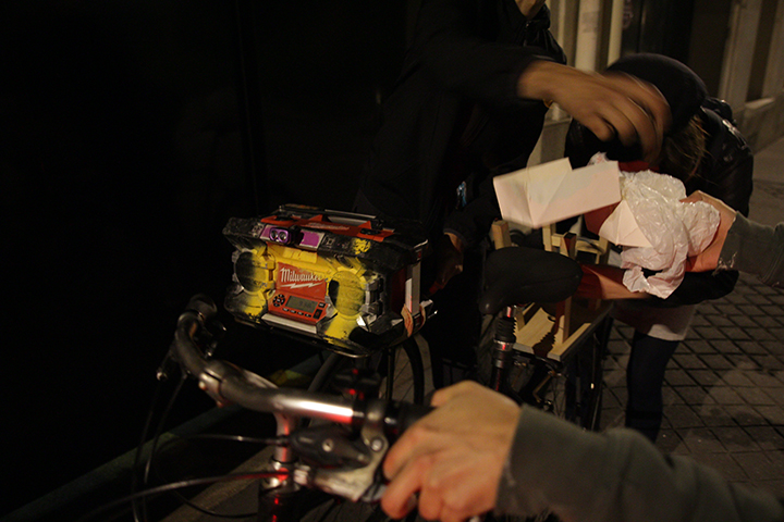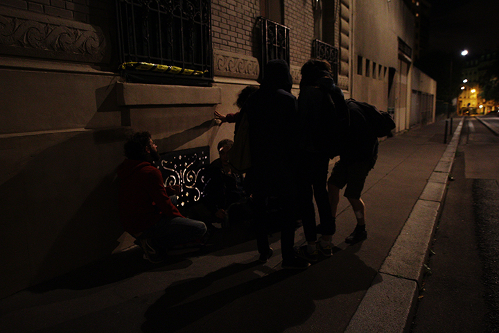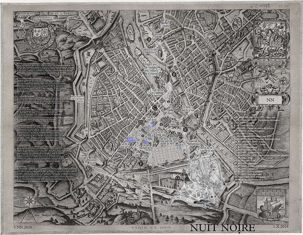 Dans les rues, des coursiers font la ronde et diffusent la première partie de la programmation radiophonique de paysages sonores captés dans les souterrains. Plus loin, une antenne radio s'échappe d'une plaque, le bateau pirate d'un jardin d'enfants prête sa table d'échec. Les joueurs s'affrontent avec un jeu uniformément noir composé des pièces dessinées par Marcel Duchamp. S'entame alors une longue marche jusqu'aux voies de la Petite Ceinture et ses tunnels.