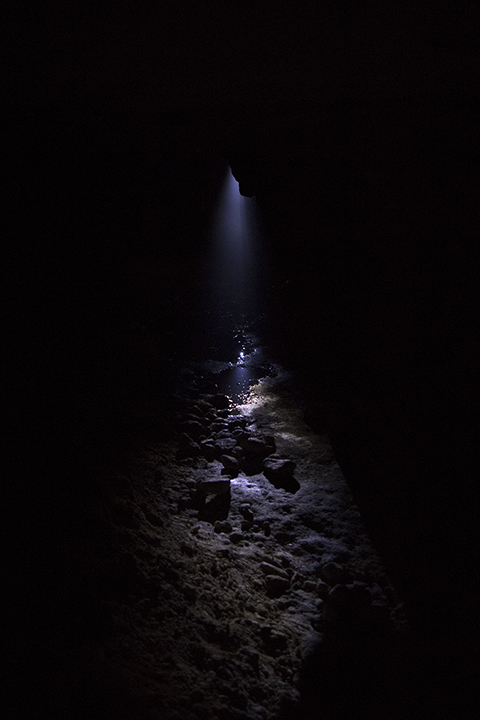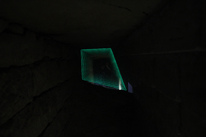 Une galerie apparaît balayée par un inquiétant faisceau. Au-delà de cette confrontation panoptique, c'est dans l'obscurité de l'arche perdue, que des formes de survivances se révèlent. Des dispositifs électroniques repliés dans des cavernes émettent des signaux. Les oscillations hertziennes, mécaniques et sonores d'un laboratoire expérimental résonnent dans le château des cloportes.