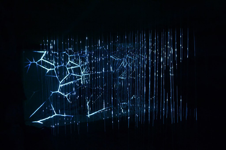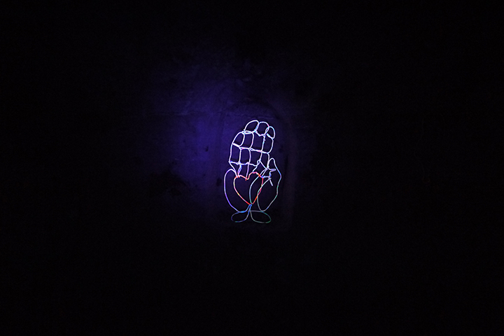 La suite est jalonnée par des propositions tant géométriques que lumineuses, points de fuites vers la salle électrogène. Les vibrations d'un live électronique expérimental clôturent la nuit.