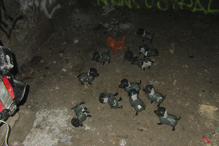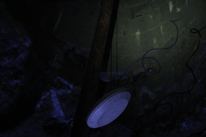 Une galerie apparaît balayée par un inquiétant faisceau. Au-delà de cette confrontation panoptique, c'est dans l'obscurité de l'arche perdue, que des formes de survivances se révèlent. Des dispositifs électroniques repliés dans des cavernes émettent des signaux. Les oscillations hertziennes, mécaniques et sonores d'un laboratoire expérimental résonnent dans le château des cloportes.