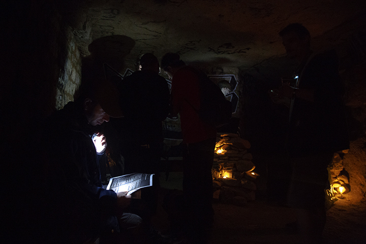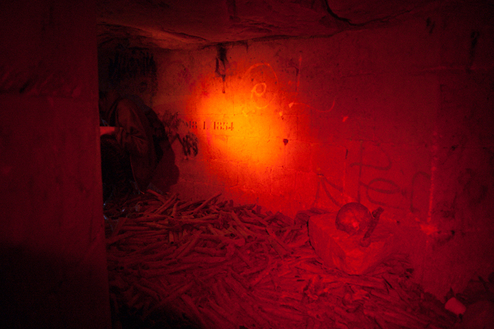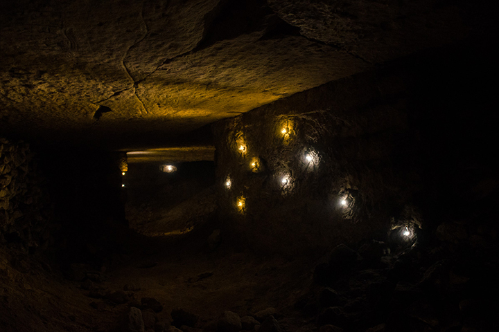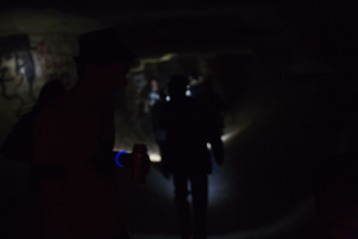 Le chemin commence dans un champ de ruines. Au détour des murs surgissent les ombres de travailleurs oubliés et des témoignages photographiques de vestiges de la société du spectacle. Se diriger alors vers les lueurs de lointaines bougies ne résultera qu'à errer en vain. En apprenant à se repérer, cataphiles et touristes s'enfoncent dans les bermudes.