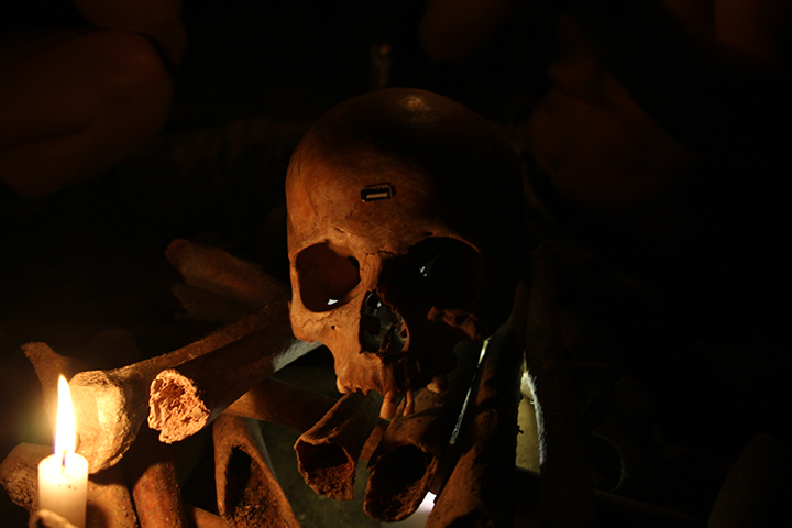 funèbre et danse macabre*, les visiteurs ont rejoint l'ossuaire pour se recueillir sur un crâne du XIIe siècle transformé en autel