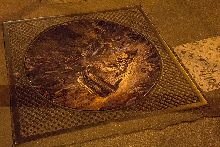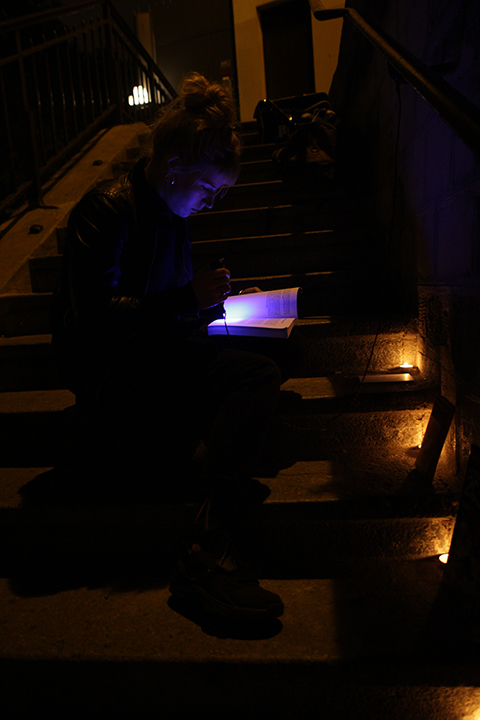 S'en suit une quête aux œuvres glissées dans la ville. Voix de philosophes, lectures de « voyage au centre de la terre », bruits d'eau captés et réenregistrés en souterrain, s'échappent de soupiraux, de trappes et de bouches d'évacuations. Un cairn mène vers l'escalier, où des livres remontés de la bibliothèque libre des catacombes révèlent des messages subliminaux.